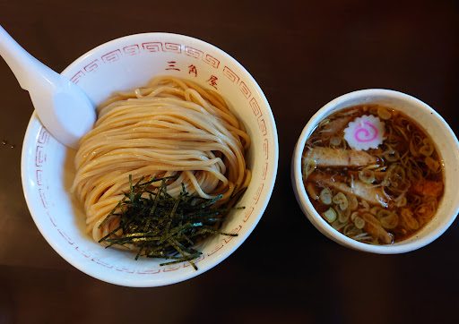 友達は三角屋のつけ麺が好きで 三角屋のつけ麺と味玉暖ラーメンを注文。