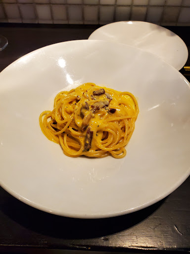 Read more甲府まで用事で出掛けて、ちょうどお昼時になったので、電話して予約して入店。カウンター席に通され、暫し待つことに…。口コミでピザ職人のお姉さんとパスタ専門の弟さんシェフとあったので、せっかくだから両方いただきたいと思い、妻と二人でそのパスタとピザを注文。パスタはカルボナーラ。ピザはハーフ&ハーフが可能だというのでクワトロフォルマッジとマルガリータを注文しました。イカ墨パスタもメニューにはありませんでしたが、今日は出来るとのこと。一瞬迷いましたが、先日他で食べたのでやはりカルボナーラに。トリュフの香りがとても良くて美味!パスタはアルデンテが好みなので、どうかな…?と思いましたが、絶妙な茹で加減でした。個人的にはもう少し固めでも良かったのですが十分満足出来ました。 濃厚で香り高く黒胡椒も良いアクセントになっていて満足でした。ピザはいつもクワトロばかり食べますが、定番のマルガリータは美味しかった🎵ふっくらモチモチで食べ応え十分です。 パスタは好きなお店があってそこ以外はあまり感動しないのですが、今日は久しぶりに良いお店に出逢った感が強かったです。 ピザもバスタも想像以上に美味しかったのでぜひコースを食べたいと思い、店主かな?奥さまに少しお話を伺ったらとても丁寧に説明してくださり、また他の若い店員さんもとても感じが良くてすべてにおいて満足でした。好きなお店が一店増えました🎵
