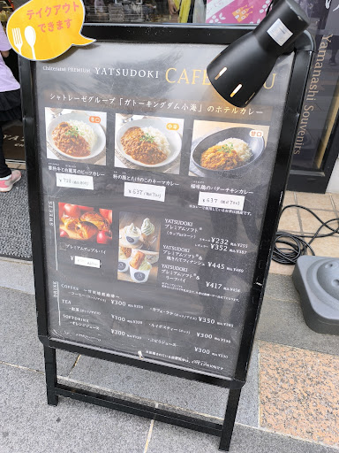 Read more山梨といったらシャトレーゼ、せっかく来たのでプレミアムブランドのYATSUDOKIで休憩をしてみよう、と来店してみました。広場でイベント開催中で様々なキッチンカーの誘惑にも負けずにたどり着きました。1階は販売スペース。2階がイートインスペースになっているので、最初に1階で注文して2階へ…。メニューは限られてしまいますが、お食事メニュー(カレーライス)もありました。 せっかく食べるのならアイスよりケーキかな!とケーキを2種類注文して2階のイートインスペースへ。レジの後ろに2階の客席のモニターがあり、スタッフさんに空いているかどうかを確認しました。たまたま調子が悪かったようで直接確認しに行ってくださいました。 1階には棒アイスの試食もあり、2階にはウォーターサーバーもありました。客席数はそこまで多くありませんが、ちょっとひと休憩することができます。ショートケーキは、シャトレーゼのケーキよりもしっかりプレミアム感が出ています。イチゴとクリームが程よい甘さで生地もふわふわでおいしかったです。 半熟ガトーフロマージュはチーズの味が濃厚なのに、なんか軽い!あれ?もう、こんなに食べたっけ?と自分でも不思議に思ってしまうほどあっという間に平らげてしまっていました。 ちょっと残念なポイントは、下膳した食器の回収の頻度が少なく、山積みになってしまっていたこと。それと同様、客席のテーブルを拭きに来てほしい~。トイレももう少しこまめに清掃していただけた...