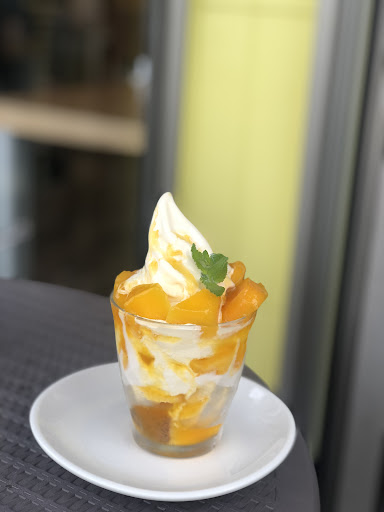おなかいっぱいになったので ハーフサイズのマンゴーパフェを頂きました✨ ハーフサイズでも大満足のボリュームです! 自家製のソフトクリームが大変美味しかったです❤️