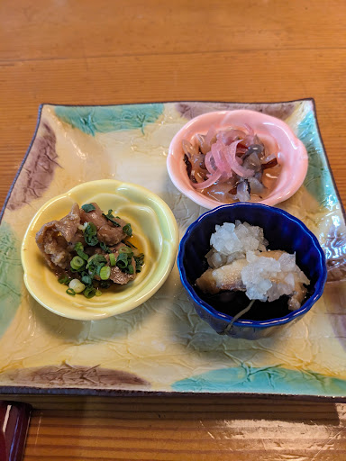 Read moreコロナ禍前に訪れて、二度目の訪問。 味は相変わらず良かったです。 ただメニューによって量がマチマチで、多分少ないだろうと二皿頼むと多すぎ、多いだろうと一皿にすると少な過ぎで、ここらへんは常連でなければ分からないので、お店側で配慮してくれると良かったのにと思いました。 量に驚いて写真撮るの忘れましたが、特に白子は老人3~4人で食べるのに丁度良い程度(二皿頼んで往生した)唐揚げも同様で多すぎ一皿で充分、逆に桶に入ったおつまみセットは一人一桶が良かったかな...
