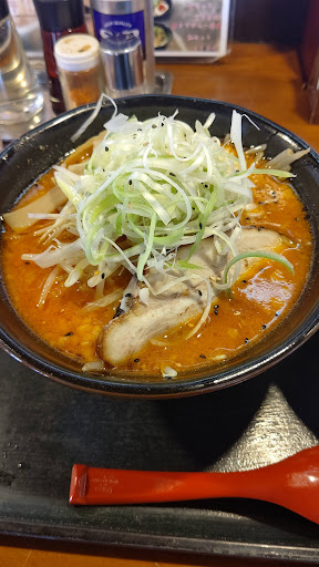 ①様々な種類のラーメンや定食がいただける車でのアクセス容易なラーメン屋さんです。 R6.10上旬平日午後5時半頃に伺いました。 辛ネギ味噌󠄀ラーメン大盛(950円+120円)を頂きました。 券売機は無く、店員さんに注文します。10分後に配膳されました。見た目のインパクトは凄いですね。ボリューム満点。 スープは…。味噌の味が薄いです…。ベースの旨味も感じられません…。シャバシャバの味噌味が弱いスープでした。 麺は太麺でややウェーブ。スープに絡みますが、スープが弱いので、太麺に合いませんね…。 具材は豪華ですよ。辛ネギが大量、太めのメンマが適量、デカいチャーシューが1枚、炒めたモヤシも盛り付けられていました。 う〜ん…。味噌の分量を間違えたのか、ベースのスープも午後開店直後で準備が不十分だったのか…。いずれにせよ、残念なスープでした。 国道4号線沿いで駐車場も広いですし、座席も奥座敷まであるので家族連れにも対応でき...
