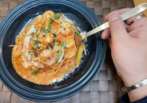 Read moreランチ時に訪問。 『小えびと彩り野菜のパルミジャーノかけ』をいただきました。 海老がいっぱい入っていて、ブロッコリーにスナップエンドウ、パプリカに玉ねぎ、たぶんズッキーニかな?野菜もたっぷり。 ちょっとクセのあるチーズ🧀ともマッチして美味しかったです(*´∀人)