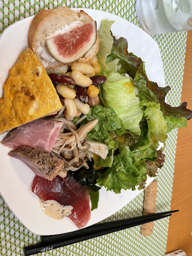 可愛くて心地よいお店の雰囲気、トルコランプやミニ噴水などのインテリアに色違いのお箸に長いコルクの箸置き、BGM、トイレも清潔。ご主人も物静かで和やかな感じ。前菜+ナスとベーコンのトマトクリームパスタを注文。お料理のタイミングも火の入れ加減も味も大満足。前菜も種類が豊富で彩り豊か。程よい酸味のドレッシングもさっぱり美味しい。カルパッチョもサラダチキンもブルスケッタもひとつひとつがどれも美味しいし、ボリュームもたっぷり。パスタもベーコンも茄子も火の入れ具合が丁度良くて、トマトクリームソースの濃厚さとチーズの絡み方、最高でした。どれもおかわりしたくなりました。 海老のトマトクリームパスタがあればさらに最高。 あと、優しい甘さのシフォンケーキもふーっわふわで茶葉...