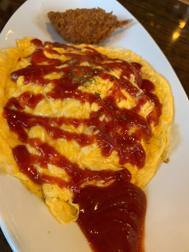 オムライスもソースが選べ、連れはデミソースでいただいておりました。 とろとろの卵にたっぷりのデミソース、つけ添えにクリームコロッケがトッピングされています❗卵が、艶々してます⤴️ デミにはチーズが入っており、スプーンですくうとチーズが伸び、ビジュアル抜群で絶対に美味しい🎵と感じます😀 お味は、デミが優しくチーズがコクを強め、とろとろ卵が全てを包み込んで、ライスとまとめ上げています😀美味しい🎵 女性は、気に入らない方はいないんじゃないでしょうか? チーズの伸びも映えますし、視覚でも味でも楽しめます❗