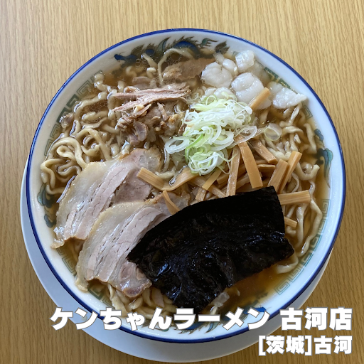 ケンちゃんラーメン古河店 どうも、さぴおです ______________ 🟦この昆布効いた煮干しスープが好きなんだ!!日本最南端にある『山形のソウルフード』ケンちゃんラーメン!!  ̄ ̄ ̄ ̄ ̄ ̄ ̄ ̄ ̄ ̄ ̄ ̄ ̄ ̄ [点数] 85点 ☆4.0 [アクセス] 『古河駅』(1.3km) [注文メニュー] 中華そば [並び・システム] 早朝記帳制(8:45ごろに訪問したら出してくれました)・チケット制 [食材] 鶏豚出汁、魚介出汁、豚チャーシュー、メンマ、海苔、脂身、自家製中華麺。 [味] 醤油、乾物