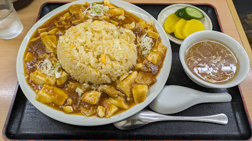 昔は拉麺を売りにしていたようですが、最近では黒炒飯、チャーシュー炒飯、定食が人気のようです。なぜ黒い炒飯なのか、聞いていたら中国の黒い醤油を使うからだそうです。 私は野菜炒め定食を頼んだのですが 野菜はシャキシャキ、味も中華でご飯が進みました。 脇役の冷奴もドドン。生姜、ネギたっぷりのってましたよ。 お手製の辣油と塩をかけて食べました。 主人はチャーシュー炒飯を頼みましたがチャーシューの味はしっかり、柔らかく、山椒の香りも食欲をそそります。1人の来客が多数で、叔母さんと叔父さん2人でやってますが、このおふたりが気の利くお二人でして、1人でもこれちゃうのが良く解りました。 娘のように可愛がって話かけたり、 これがあれば、野菜もとれると常連さんに説明したり解らないサービスはされているかと思います。 とにかく、1度いってみてください。 笑顔で食べれます。 ハイボールのコップに入り切らなかった炭酸は残りの炭酸水をもってきてくれます。ようは濃いのですよ☺️ ありがたい🙏 又伺いたいと思います。駐車場が分かりにくいので1度お店の前に停めて、 叔母さんに聞けば、ありがたい、ありがたいって、近くの駐...