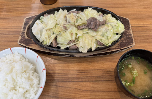 旨いが、塩が強くて食べた後に舌がヒリヒリしました。 先日はびっくり亭本店に行きましたがこちらの店舗、びっくり亭と同じ様な見た目そっくりのキャベツと肉を鉄板に敷いて辛味噌で頂く様式です。 良い点:店内は綺麗でエプロン完備、味変は甘味噌、カレー味噌、岩塩、酢などが有り楽しく食べれます。清潔さやサービス、味変、お冷はコップが大きく何回も注ぎにいかなくても良い、注文したら作り置きでは無くその場で調理するので肉が柔らかく素晴らしい点が沢山有ります。