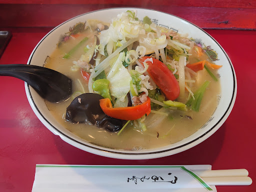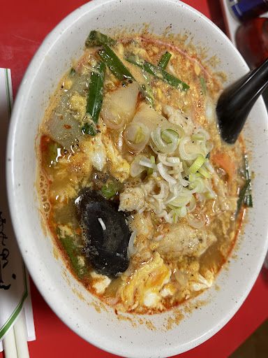 五目す(酢)ラーメン¥950をオーダー 満席でしたので 20分後くらいで配膳されました。 いわゆる酸辣湯麺ですね。 麺がとても食感がよく美味しいです。 豚肉もとても仕事がされており プリプリ熱々 けっこう丁寧に作られてるなぁと 感じました。 ぱっと見は量がそれほどある様に見えない ですけど、実際かなりの量があり 普通盛りで十分かと思います。