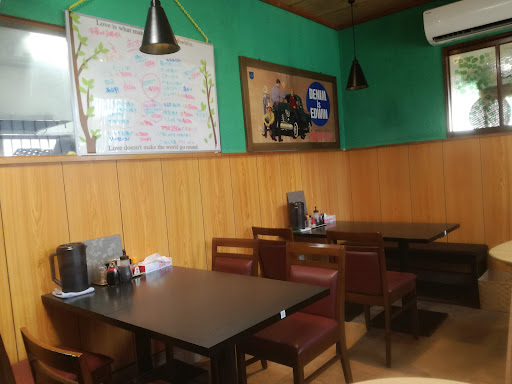 店内は4人用のテーブル席が3つと、それよりひと回り大きいぐらいのテーブル席が2つありました。