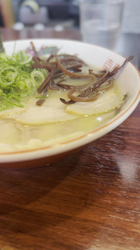 Read more2025年2月28日(金)の13時半頃に初訪問。ハシゴの2件目に訪問。勤め先の現場の娘から聴いていたのと,グーグルマップでの評価が高くて気になっていた店。 駐車場が狭いからと悩んでいたら,お隣のパチ屋の立体駐車場が使えると分かって一安心。早速、チャーシューメン(¥980)と大白飯(¥220)をオーダー。大白飯は"量が少な!"ってレベルで残念な感じ。チャーシューはバラ肉らしき部位を使用。スープは背アブラがある割にはアッサリでマイルド。味は濃くもなく塩辛くもなく塩梅バランスは絶妙。コチラの麺は細麺なので,バリカタかカタ麺が合いますね。指定の麺コールしなかったけど,最後の方に伸び気味になった麺は,正直に美味しくなかった。トータルで見ると別にパンチがある訳でもなく,万人受けしそうな,当たり障りのない,やさしい博多ラーメンでした。但しランチメニューのセットが効いているみたいで,自分以降も続々とお客さんが来店してきて大人気でした。ハシゴの1件目での強烈パンチ型の後の2件目だったので,ココでは何も印象に残らなかったのかもしれません...