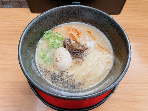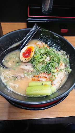 Read more水口町の裁判所近くにあるラーメン屋さんです。(ФωФ)滋賀県に5店舗を展開するラーメン屋さんで滋賀県のラーメンシーンでは有名な存在です。(ФωФ) 水口店はその中でもかなりこじんまりした店舗で席はカウンターのみで10席ほど。ちなみに食券制です。(゚∀゚*) メニューは他の天下ご麺とほぼ同じですが『塩とんこつ』なるメニューもありましたね。(ФωФ) 今回はその『塩とんこつ炙りチャーシュー』と『焼豚丼』を連れ合いは『塩とんこつの通麺』とやらを注文。 提供時間は意外にかかった感じ。(ФωФ) 塩とんこつはこってりしたとんこつスープに細麺ストレートがよく絡む。トッピングは炙りチャーシューにネギ、煮卵(ハーフ)木耳にチンゲン菜の茎のよーなモノwwwが乗っている(ФωФ) 正直、かなりヘビーな感じ。(゚Д゚;)豚骨ベースのせいだろうか意外に腹にたまってしまう感じ。 逆に『通麺』とやらは麺とネギのみとゆーシンプル過ぎるラーメン。(゚Д゚;) これはこれで物足りない感じ。(ФωФ) ですが天下ご麺のレギュラーメニューはしっかり楽しめるお店ですよ。(゚∀゚*) ごちそう...