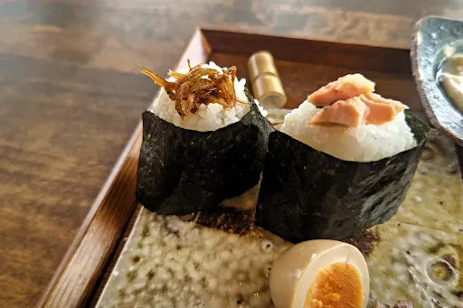 おにぎりは、作り置きなのか、表面が乾いてパサパサでした。おにぎりを売り物にしてるのに、全然美味しいお米じゃなかったです。お味噌汁はほぼお湯。薄味レベルではありませんでした。基本、私は薄味なので、さすがにびっくりです。お豆腐は好みなのでしょうが、私はこのネッチョリ舌触りが苦手でした。なめこも乗っているのに無味。全部を通して、味が薄いというより、もはや味がしない。唯一、お漬物のきゅうりだけはしっかりした味がついていました。