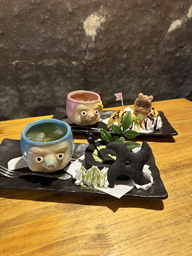 ⚫︎ ぽんぽこセット ¥1,100 バームクーヘンとのクッキー、ドリンクのセット。 たぬきのクッキーが可愛い😍 バームクーヘンが絶品すぎてびっくりした🥰