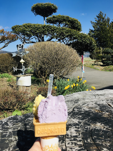 Read more連休の祭日だったためか、やまなみハイウェイ沿いのアイスクリーム屋さんは休業してるお店が多い中、こちらの営業中の目立つノボリを見つけて立ち寄りました。 お店は農機具小屋を抜けた1番奥側の左手にあります。 営業してるのか休みなのか、ぱっと見は分かりにくかったのですが、アルミサッシの扉を開けると営業されてたのでほっとしました。