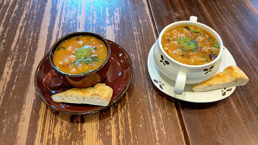 Read more明治亭目当てで訪問しましたが長蛇の列で、ほぼ同じ敷地内と言っていい場所にあったこちらでランチ。 お店の雰囲気はカジュアル。値段も手頃。 家内はピザランチ、私はパスタランチを注文。 値段も手頃だったので小さめだろうと思いきや、先に来たピザはかなりのサイズ。2人で半分ずつ食べ、お腹がいい感じになるくらいのボリューム。 野菜がたっぷり載っていて、味も美味しかったです。 それを食べ終わった頃にパスタを出して下さったのですが、こちらは盛り付けからしてすごかったので、思わず写真を撮影。 野菜の素揚げがのった冷製パスタでしたが、野菜の素揚げがボリューミーで、これまた美味い!麺はほんのり甘めのトマトソースをまとい、いくらでも食べられる。たっぷりのトマトとジェノベーゼソースは最後余るので、一緒にきたバゲットにつけて食べると、これまた美味い。 次回はこちら目当てに訪問して、他のメニューも食べてみたいと思い...