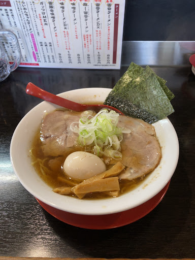 Read more駒ヶ根では評価の高いラーメン屋さんと言う事で、久々のおひとり様ランチタイムに伺い、お店のメニューの先頭にある雷音ラーメンのデラックスを頼みました。 魚出汁ベースの醤油ラーメンで、サッパリして美味しかったです。デラックスなので、具材も多く、チャーシュー、味玉共に良いお味でした。麺は、個人的には余り好きな食感ではなく少し残念でした。スープも松本の魚出汁系のお店と比べるとパンチが強くない印象でした。 ガッツリ系の好きな私としては、サッパリし過ぎていた感じがします。 餃子も頼みましたが、こちらは好みの味で美味しくいただきました。 かなり正統派な魚出汁系のラー...