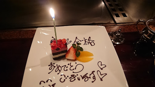 特別な時に訪れる場所、、、 今回は結婚記念日で奮発し、本当に久しぶりに訪れました。 30年程前、今となれば嫁様が彼女の時に、若造が見栄を張ってステーキのお店としてお世話になり、こんな美味しい物があるのかと目から鱗が落ち、事ある毎に通ってましたが、、、 子供ができ、仕事も忙しくなる内に中々顔を出せなかったのですが、ほぼ15年ぶりに来る事ができました。 店長のお任せコースでお願いし、前菜?(大変豪華!)〜お魚やハムやチーズ(素敵な盛付!!)等をじっくりと味わい、、、 若造で緊張してた昔を思い出し、ビール&ワイン(嫁様は運転手でノンアルコール)をグビグビと浴びるように飲んでしまった。 メインディッシュの特選和牛が運ばれてきて眼の前に置かれ、説明してくれてたけど興奮してほぼ聞こえずに、またビールを煽ってしまいました。 眼の前の鉄板で丁寧に焼き上げられていくステーキを目を丸くして拝見し、各自のお皿に取り分けて頂き、和牛とニンニクのエキスがしっかりと染み込んだ付け合せのもやしのソテーにご飯と味噌汁、大変コクのあるおろし醤油をつけ、お箸でいただきました。 噛めば肉汁が滴る絶妙な焼き加減で、脂がこってりせず噛めば噛むほど旨味が湧き出てくる、最高のステーキを堪能しました!! この時点で結構満腹で大感動でしたが、、、 この後のデザート=アイスクリームの鉄板焼の炎のショーと、結婚記念日の御祝ケーキを付けて頂き、第2回目の大感動で、ビールをまたしても追加してしまいました。 表現が下手で料理を、詳しく伝えられなくて申し訳ないですが、、、 端的に言って、今年一番行って良かった&...