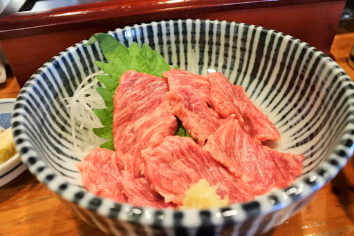 トロ馬刺しはいい具合に霜が入ってとろけるような美味しさです。モツ煮はややあっさり目な味付け。 日本酒(小)を頼んだのですが、時期柄か燗ででてきました。銘柄はわかりませんが温まって美味しかったです。