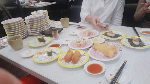 A conveyor belt restaurant where you can eat affordable sushi when you don't want to spend the extra buck at a chef's table. Although if you made the trip to Japan I do recommend sitting at least once at a high end restaurant. The price tag might set you off but the experience and the food is incomparable, even if you think that raw fish...