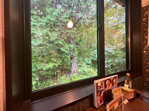 Read more駒ヶ根には、ソースかつ丼が美味しい、明治亭があるときいていたので、かねがね食べてみたいと思っていた。 ちょうど近くに来る機会があったので、最初に見つけた一号店に車を入れた。やはり建物の入り口付近は待ち客でいっぱい。 次に二号店もいっぱい。 諦めかけた時に、この中央アルプス登山口店を見つけた。 丁寧におじさんに駐車場内、案内されて、待ち時間もなく店内へ。 店内はかなり賑わっていて、店員さんたちの声も活気があった。 最もオーソドックスなメニューをいただきたかったので、ロースのソースかつ丼を注文。 長めに待たされて、でて来たのは、なんとも立派なかつ丼。 ご飯は普通盛りにしたはずなのに、大盛りなみの量、かと思ったら半分はキャベツ。 やはりカツにはキャベツは重要アイテム。 1400円の価格からすればお肉は立派だけど、こんなもんてして。このキャベツ、おいしかったです。 一人だったので、カウンターに座らされたのは少し残念。テラス席は気持ち良さそうでした。 一度は食べてみたかった明治亭のソースかつ丼、念願かないました。けど、貧乏性の自分にはサービスエリアで食べる安物の...