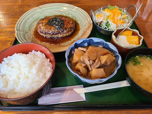 私はステーキのセット、連れはハンバーグのセットを頼みました。ステーキは甘焼き加減はレアで、辛醤油ベースに梅?の酸味が効いた特製ソースが最初からたっぷりかかっています。 味付けはだいぶ濃いめで、私の好みにはピッタリですがちょっと敬遠する方もいるかもと感じました。 あとお肉ですがいわゆる「良い肉」ではありませんので繊維切りしたり調理で美味しくしてくれている感じです。それでも外食としては十分リーズナブルだと思います。ファミレスあたりの特上〇〇ステーキ、なんかよ...
