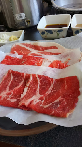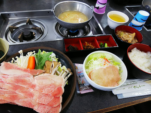 冬なので熱々のお鍋は嬉しかったのですが…。 白っぽいスープでしゃぶしゃぶするお鍋でしたが、カッチカチに凍ったスライス肉は炊いても硬いし、超薄味スープなんだけど、唐辛子のピリピリだけはやたら際立ってました。小鉢のお蕎麦は長く出汁にひたってたのかフニフニ、ちょこっとあった金平ごぼうみたいなおかずは何か匂うし、ご飯は冷たくてねっちょり…途中で食べるのやめました。 テーブルは一席飛ばしで交互に対面だったけど、パーティションも無いし、普通に向かい合わせで食べてるのと何が違うのやら。
