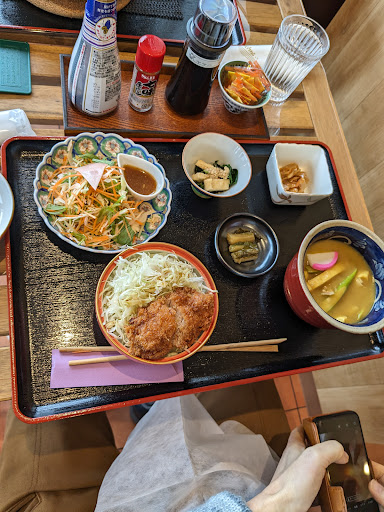 Read more南信の方に出かけていたので帰り際、食堂を探していて某食堂は結構並んでいたためこちらに決めました。旦那が味噌かつ定食、わたしは小さなセットを注文してサラダ、小鉢、漬物、ミニカレーうどん、ミニのヒレカツ丼がついていました。カレーうどんは少し辛い程度で食べられない程ではなく、うどんもコシがあって美味しかったです。ヒレカツ丼も味がちょうどよかったです。小さなセットは女性が食べてちょうどいいサイズ感でいいと思います。旦那の味噌かつ定食でロースカツを頼み、一切れいただきましたが、味も濃すぎずこれもまた美味しかったです。また出かけた...