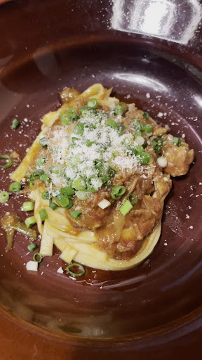 Read more今日ランチに予約なしで行きました。11時ちょっと過ぎでしたがもうお客様がいらっしゃったので諦めてましたが何とか入店出来ました。店内は明るすぎずしっとりした雰囲気です。席に案内された時に初めてだったので、メニューはお薦めセット?のみでしたので「すみませ~ん」と大声で呼んでしまいました。店員さんは入店された順番にお冷ややおしぼりにオーダーを取りに来てくれますからしばしお待ちくださいませ。《前菜》《スープ》《パスタ(2択)》《デザート(2品選択)》《ドリンク》で税込2350円です。 お店の雰囲気に合わないラフな格好でちょっと恥ずかしかったです。膝にナプキンをかけ、お冷やは店員さんが気づいたら注いでくれますが、ワイン瓶(グリーン)みたいなのを持ってこられたから最初お酒かと勘違いしてしまいました。 前菜が1プレートに配置され運ばれてきたら、店員さんが説明をしてくださいました。パン2種類にイカと玉ねぎのマリネ?チキン、ソーセージ、トマトとゆで玉子のサラダでした。パン1つちょっと塩気がありましたがガーリックが効いてて美味しかったです。イカや玉ねぎの味付けも絶妙でソーセージもチキンも美味しくサラダもありもりだくさん。 フォークやナイフ等それぞれ使用したら新しい物と交換して貰える気配り。スープは大麦と椎茸と?(忘れてしまいました)で見た感じ冷たいスープかと思ったので思い切り食したらヤケドしました。アラビアータを選びましたが食べる前に既にお腹いっぱい、でもトマトの酸味と粉チーズに唐辛子が絶妙。最初唐辛子だと気付かず食べたら「から~い」(汗) デザートは新幹線のワゴン販売みたいに席まで持ってきてくださり、2品選べるようになってます。注文するとその場で盛り付けてテーブルに置いてくれます。そこへドリンクが運ばれてきて、至福の一時でした。 高級店の装いですがちょっとだけリーズナブルになっています。味は絶品です。 私の連れが足が不自由なのでドアは前後の手押しドア、店員さんがご親切にもドアを開けておいてくださり助かりました。スロープはありましたが狭く車椅子の方は不自由されるかも。私達が入店して12時過ぎた頃でしょうか?駐車場がなく停めれないというお客様がいらっしゃいました。 本当は5星にしたかったのですがバリアフリーにもう少し重点をおいた店内にして欲しいのと、もう少しお値段もリーズナブルになれば嬉しいです。 予...