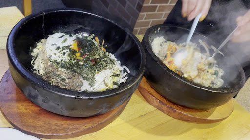 石焼ビビンバは石の器が良くあるヤツの倍の大きさ。蓄熱量がすごくて最後まで熱かった。 ママさんが手早く混ぜてくれて視覚的にも良かったですよ。
