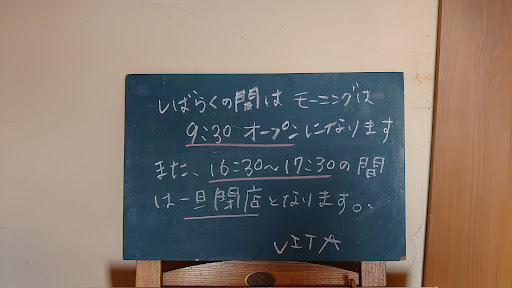 Read more11月27日編集 9時30分オープンの貼り紙が見えなかったのでオープン時間が変わったのかもしれないが、今回もまた開かなかった。 オープン時間変更の貼り紙もされていないので、たぶん潰れたんだろう。 そうでなかったら適当すぎて、店として低レベル。 なので、閉業編集をしました。 もしやっているなら、再編集をお願いします。
