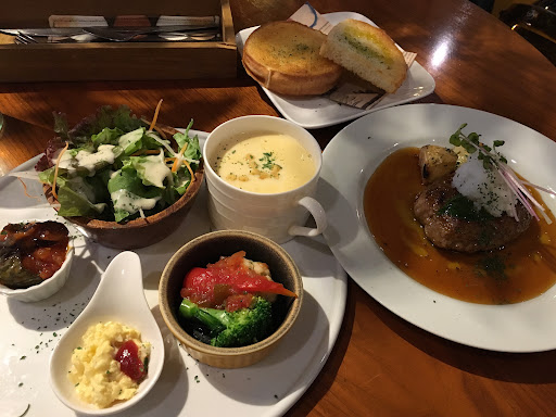 限定10食のランチは約2000円するからか、まだありました。迷いましたが、店の名前のモダーンランチ(ハンバーグ)にしました。