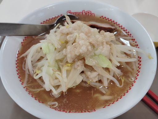 Read more数量限定スガジローを食しに 三連休最終日の15時前くらいに来店 店員は3名、麺が太い分、麺の茹で時間が長くなり、呼び出しまでは通常よりも長くなってる感じ スガジローのクオリティは想像よりも良くてちゃんと二郎していた 麺量を二郎系に寄せて大盛りにしちゃうと、二郎、二郎インスパと値段的に変わらなくなるので、スガキヤと二郎系のお店が隣同士にあれば二郎系に入っちゃうかも 二郎系統に行かれたことない、もしくは行くのが怖い方には雰囲気を味わうにはいい体験かもしれません...