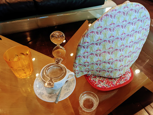 2022.?x/x…平日だが、昨日の出勤の代休なので、土日は諦めがちな此処を訪れる。 しかし・・平日 しかも もう16:00頃にも関わらず、駐車場は やつぱり車で埋まっている。 よく見ると、一番奥の車の向こう側がスペースが有るっぽいので、取り敢へず バックして突っ込んでみる。 何とか、車と 色々な植物が生い茂る境界との間に入り込む事が出来てホッ・・。 メニューブックをチェック、大好きな洋梨のタルトに ルンルン気分になったのも束の間、sold out で糠喜びに終わる。 しかし、レモンのドリズルケーキにホッ・・。 紅茶専門店だから当たり前なのかもだが、ティーポットに布製の頭巾みたいなものを被せてくれる(門外漢 故、名称は知らない)。 ケーキは、バウムクーヘンの外側に塗ってあるフォンダンみたいな感じ。 生地に レモン其の物が練り込んであったり、意外にサクサクした部分も有る食感も。 メニューの説明に、イタリアの郷土スウィーツみたいな事が書かれていた様な気がする。