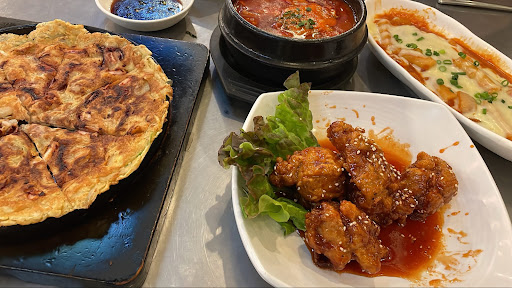 海鮮チヂミがめちゃくちゃおいしくて、オススメです!。他店のより私は好みです。 チーズトッポギもおいしいです。トッポギ、玉ねぎ、はんぺんのようなものが入っており、なかなかサイズ感も大きめです。 ヤンニョムチキンは、想像しているよりも多い量が来ます!!。 この量でこの金額!!と驚くくらいなのと、色々頼んだりすると、一つ一つのサイズがボリュームあるので、お腹パンパンになるかもしれません。 スンドゥブもよく食べるのですが、とっても美味しいです。 あとはマンゴージュースが美味しいのでいつも何杯ものんでしまいます!!!