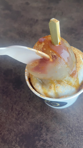 私の居住している所でも、この店舗で販売しているモンブランと同様のモンブランが販売されていますが、 私の居住している所で販売されているモンブランは、オープン1時間前に並んで整理券を受け取らないと、食べられないのですが、この店舗で販売されているモンブランは、オープン前に並んで整理券を受け取らなくても、オープンしてから行っても、じゅうぶん食べられるので、まず、その点に驚きました。 しかし、何せ、大人気のスイーツだけあって、地元のモンブランでさえ食べた事がないので、どのくらいの大きさなのか分からず、店舗に入り、聞いたらスポンジ生地仕立てのモンブランの大きさは、1人分の大きさがホールケーキよりは、やや小さめですが、1人分の大きさにしては大きすぎるので、ソフトクリーム仕立てのモンブランをお持ち帰り注文しました。 聞けば、お持ち帰り注文では店舗の外のベンチ席で待つ様に案内されたので、待ちましたが、お持ち帰りするとソフトクリーム仕立てなので、家に到着するまでに溶けると思い、待っていたベンチ席で食べました。 一口、口にしたら...