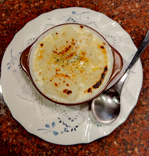 2023年11月3日文化の日。数年ぶりに家内と二人で外食をすることにした。何処へ行こうかと家内に尋ねると「モカ」。40年以上も前から折に触れてお邪魔し、マスターやママさんと楽しいお喋りや食事を楽しんできた場所。早速「生ハムサラダ」と「シェフのお任せ三品」。 お任せは「ウマヅラのカルパッチョ」と「そいのグリル」それと「仔牛のロースト」どれも美味しい。ワインもすすむ。 一番好きな「ポテトグラタン」と「ナチュラルチーズの盛り合わせ」も追加注文。どれも満足。食べることに夢中になっていたので写真は「ポテトグラタン...
