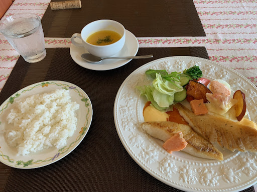 Read more以前から気になっていたお店で、やっと食事が出来ました。この日は11時のオープンから10分過ぎたくらいに来店。他にお客様は居なくて、静かでした。ランチメニューは沢山選択肢があり、この日はメイン料理が選べるランチセットにしました。白いお皿にポークステーキと野菜が盛り付けられていて、野菜は新鮮、ステーキはお肉が柔らかく、ソースがとても美味しくて、最後パンに付けて食べました。デザートはカットフルーツとバームクーヘンとアイスクリームが小さなガラスの器に盛り付けられていて、これも美味しかったです。シニア世代のご夫婦のお店で、接客も丁寧で、気持...