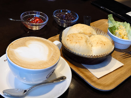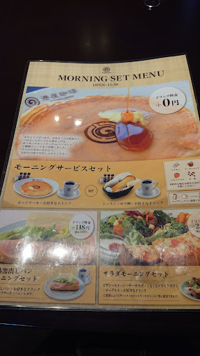 ドリンク料金で、トースト半分+ゆで卵orホットケーキが付いてきます。 今回は、せっかくなのでいくらか料金を追加して、『サラダモーニングセット』(ホットケーキ)を注文しました。意外とホットケーキが大きくて、お腹いっぱいに(笑)サラダも思ったより量があり、くるくるポテト?もおいしかったです。 スタッフの方々もみなさん丁寧な接客で感じが良かったです。 また、機会があれば寄らせていただきます!