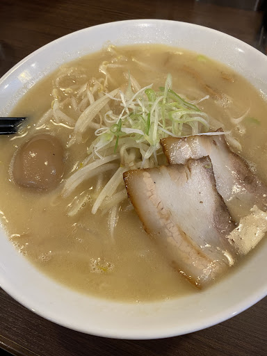 ・味噌ラーメン 豚骨ベースの味噌スープで、ワイルドで強い旨みの後に味噌の香りが鼻を抜ける。 麺はよくある中細ちぢれ麺で、コッテリめのスープがよく絡む。 野菜はもやしとネギ、チャーシューと定番のもの。