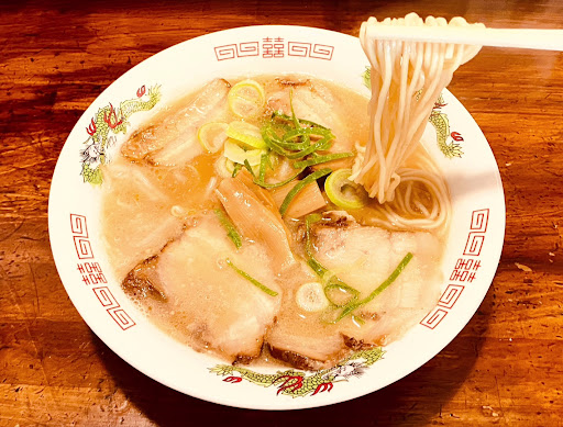 Read moreうどんの七福さんが定休日だったので、前から気になっていた中々さんへ 駐車場は店の南側にあります 店内は、昭和の国道沿いにあったお店の雰囲気 タイムスリップした気分になれます ラーメンは、豚骨ベースで黒(醤油)白(塩)赤(味噌󠄀)、他につけ麺なんかもあるみたいです 店員さんにオススメを伺うと「黒」との事で、黒大とチャーシュー丼小をお願いしました カウンターにはバイク雑誌が並んでました(大将の趣味かな?) ほどなくチャーシュー丼が着丼 併せて籠を持ってこられて「味付けはご自身で」との事 籠の中には、タレ、ワサビ、マヨネーズ、七味、胡椒が入ってました これは新しい✨️ マヨラー&辛い物好きには、自由が嬉しかったです 味付けしている間にラーメンも到着 黒というよりは茶色のスープ まずはスープから 一口目は豚骨臭がほのかに感じられましたが、気になることはなし 塩味も程よく、美味しくいただきました お昼どきちょっと過ぎでしたが、客足も途絶える事なく、愛されてるんだなとわかるお店でした...