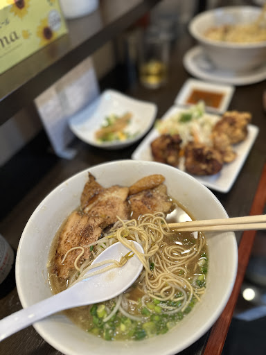 Read more家族3人で食べに行きました。私は炙りチャーシュー入り中華そば大(煮卵100円とすりおろしにんにくトッピング無料)と半チャーハン(量は普通並みにあります)、嫁さんと子供はミニとり丼(お茶碗に山盛り)と炙りチャーシュ中華そばと唐揚げをシェアして食べました。 炙りチャーシューは分厚くて、食べ応えあるし、ジューシー(笑) チャーハンもパラパラで、自分好みの味で、半チャーハンなのにめっちゃボリュームがあり、めちゃめちゃ美味しかったです。 唐揚げも3個入りで、大きくて、ジューシーで文句なし。 ミニとり丼にも刻み唐揚げがたくさん入ってマヨネーズもかかって最高でした。 オーダーストップ前に滑り込みましたが、女性の店員さんの笑顔が素敵で、優しく接客してくれたので、気持ちよく食べることが出来ました。 リピート確定って家族みんなが口に出すほど、...