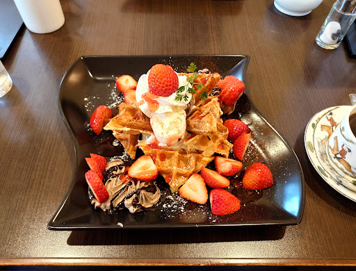 Read more季節限定の苺メニューを求めて来店。 ドリンク、デザート共に限定メニューがあるが、今回は苺ワッフルとブレンドコーヒー(通常メニュー)をオーダー。 黒いプレートに苺、ワッフル、ホイップが映えます。 ワッフルはカリカリで美味しい。ホイップと一緒に食べると最高!苺とホイップも当然良き!そして甘いものにはコーヒーがよく合いますよね。 その他の限定メニューも気になるところですが、流石にそんなには頂けません…。 ま...