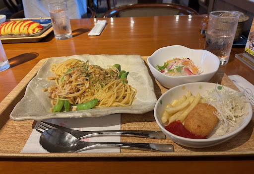 Service getting a table was quick, and the menus were easily translatable. I would recommend the sakura shrimp and pea pasta. It came as a set with coffee/tea, a croquette, and coffee jelly for dessert. The coffee jelly was really delicious and not too sweet with whipped cream on top. The waitress was very quick and the...