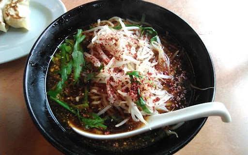 国道沿いを移動中、空腹を憶えたわたしは胃袋の訴えに応じ丁度目の前にあった一件の中華そば店に入りました。 昼にまだ時間のある店内は客も疎らでわたしはこれ幸いとひとりでテーブル席を占領すると言う暴挙におよびました。 そしてメニューを開き軽く考える。「はて、我が愛しの胃袋ストマックは味噌を欲しておらん。然りとて単純に醤油もいかがなものか?おや、この店にはカレーラーメンがある。やれなつかしや、我が幼少のみぎりにはよく見掛けたメニューだが近年では見掛ける事も珍しい」 そこまで考えわたしは店員さんを呼びメニューの一点を指差しました。 それこそがこのレビューに貼り付けられている写真のラーメン、台湾ラーメンなのです。 確かにカレーラーメンは魅力的でした。しかしながらわたしには自信が無かったのです。そう、カレーラーメンを食べつつも汁を跳ばさず服を汚さない自信がっ!! 無かったのですっっ!! カレーラーメンは作業着か汚れてもよい服を着用してから再チャレ...