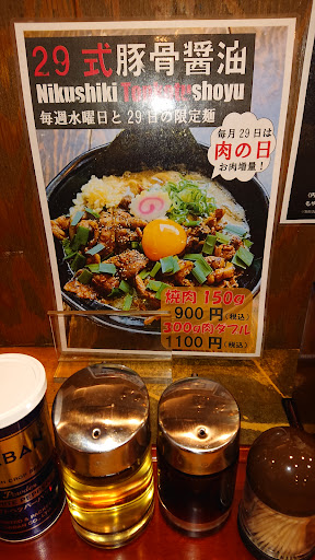 やっぱり個人的には、豚基本かなぁ❔だな‼️😄 つけ麺・29式・まぜも好き😊 29式は毎月29日限定でレギュラー化❕(水曜日は止めてしまった…残念) 焼肉通常+50g(200g)・肉ダブル+100g(400g)) 肉祭りじゃ❕
