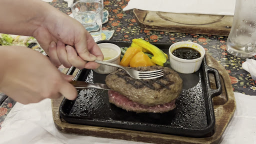 特にハンバーグステーキはレアでも食べられるし、熱々の鉄板でお好みの焼き加減にすることもできる。 メニューにない大きさも対応してくれる。 昔は600gなどもペロリだったが、40歳も過ぎると400gでぱんぱんだ😅 海賊ビーフステーキはオージービーフではあるが、その中でも厳選された肉を使っているので味は美味しく肉質も柔らかい👌