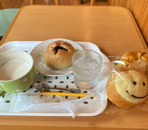 Read more年配の方たちがたくさんいらっしゃっていました。そのため皆さん声は大きめ(笑)でしたが明るい店内でした。 モーニングでホットミルクと田舎パン(ごぼうとこんにゃく)をいただきました。300円という安さに驚きです。 ほかにもテイクアウトしました。どのパンもサイズは割と小さめで、私としては食べやすくてありがたいです。100円のものも多く、安いです…! イートインスペースは10席ほど。決して広くない店内ですが、パンの種類も豊富で、ま...