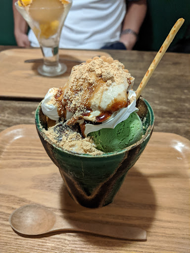 Read more今日はお隣の喫茶店での提供とのことで、コーヒーと一緒にいただきました。いろんなパフェがあってとても迷いましたが、抹茶白ごまプリンパフェのレギュラー、夫はマンゴーバナナパフェのレギュラーを頂きました。白ごまプリンの優しい味と、濃厚な生クリーム、抹茶のアイスがとてもマッチしていて美味しかったです。マンゴーアイスもすごく美味しい。アイスの持ち帰りができるようで、食べている間に何人かアイスの持ち帰りのご来店もあり、今度は持ち帰りもしてみようかな。ウドちゃんが食べていた白ごま納豆パフェも、次回は...