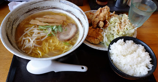 2今日は3年前に来てお気に入りになったラーメン店を訪問。 前の投稿を見ずランチのセットメニューを選択です。 私は前も食べたチャーハンと揚げ餃子がついたBセットを注文で好きな醤油ラーメンを選択(税込1,050円)。 嫁さんはCセット(塩ラーメン+ミニチャーシュー丼+揚げ餃子)(税込1,000円)を選択です。 店内は開店直後のためか今日はかなり空いていました。10分待たずメニューが登場。 見た目薄そうに感じるスープの色。 灌水を使った黄色い麺で細麺。 懐かしさを感じるラーメンです。 胡椒を追加し食べ勧める。 チャーハンはパラパラでまたうまい。 途中で嫁さんのミニチャーシュー丼と交換。 炙られたチャーシューも温かでタレも美味いです。 揚げ餃子は2個でジューシーで焼き餃子とはまた違い美味しいですね。 セットメニューは課金すればお好きなラーメンに変えられると言うことをまた後で思い出した。 今度は味噌...